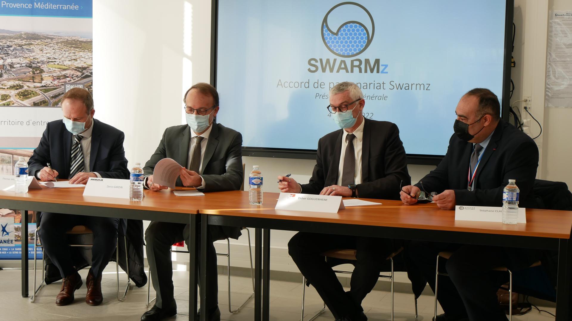Fort de l’aventure « Challenge SwarmZ-2021 » qui a permis la conception de 10 mini drones marins de surfaces, TVT Innovation / System Factory, Naval Group et MBDA Systems ont lancé l’initiative SwarmZ pour la création d’un groupement de travail permettant d’accélérer l’innovation dans le domaine des essaims de drones. Ce projet a été annoncé officiellement le 04 février 2022 avec la signature de l’accord de partenariat SwarmZ.